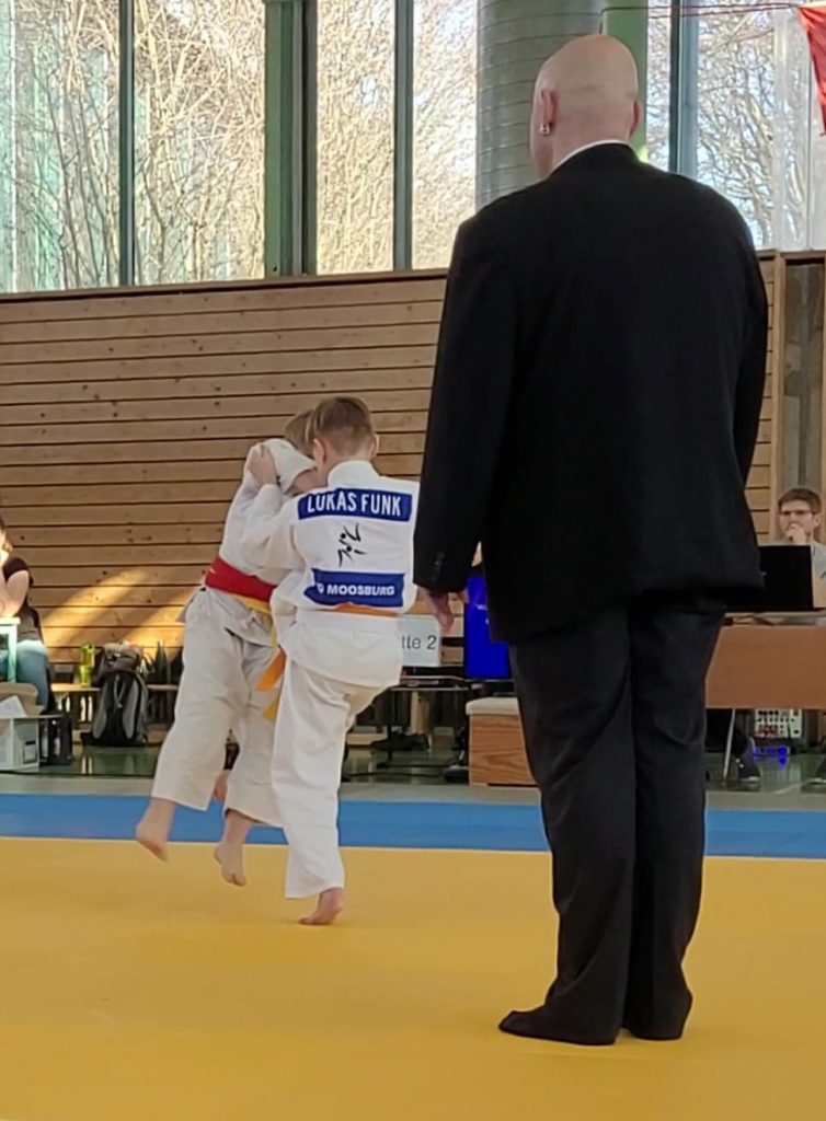 Zum anderen Yoyko Dermendzhiyski, der ebenfalls erst im vergangenen Herbst in unserer ersten Freitagsgruppe mit dem Judo begonnen hat. Mutig, entschlossen und mit viel Experimentierfreude ging er in seine Kämpfe – das Ergebnis : vier Ippon für das Moosburger Konto. Starke Leistung !