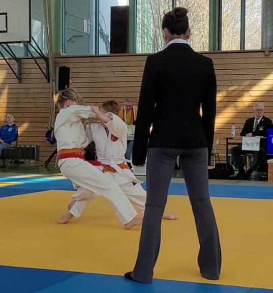 Besonders hervorzuheben : Maxi Altenbeck und Furkan Ünder, die mit unermüdlichem Einsatz und starkem Auftreten überzeugten. Maxi zeigte Kampfgeist und Furkan musste wegen Punktgleichheit von seinem Pool sogar 2x gegen den gleichen Gegner antreten. Fußfeger sind selten in dieser Altersklasse – Furkan verbuchte einen davon wortwörtlich umwerfend mit Ippon auf seiner Seite.